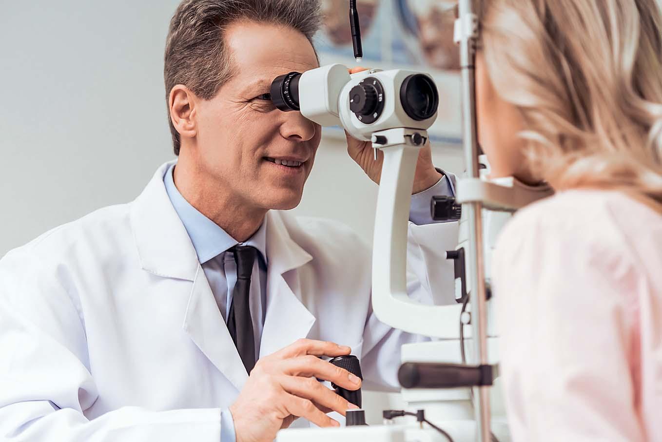 Врач определит остроту зрения и изучит состояние глазного дна. Для оценки состояния глазного дна необходимо закапать в глаза специальный препарат для расширения зрачков и подождать 15–20 минут, затем доктор проведет исследование с помощью специального аппарата.