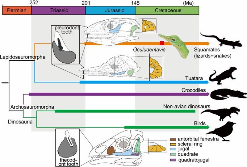 В том, что Син и О’Коннор расценили как необычные черты окулудентависа-птицы, Ван и коллеги увидели признаки, типичные для ящериц. А ящерицы от динозавров и, соответственно, птиц весьма далеки. Они вместе со змеями и гаттериями относятся к одному инфраклассу (Lepidosauromorpha) рептилий, а крокодилы, черепахи, птицы, динозавры — к другому
