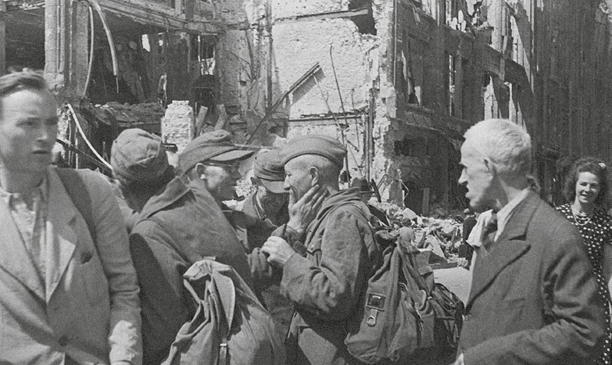 Оба, Илья Аронс и Валерий Гинзбург, учились на операторском факультете ВГИКа, защищали Москву в народном ополчении и увидели Берлин весной 45-го. И всё-таки это два очень разных взгляда. Один — опытного фронтового оператора, хорошо понимавшего, что именно он снимает. И другой — студента-вгиковца, который вскоре станет выдающимся оператором, но пока фиксирует мгновения и атмосферу тех незабываемых дней. Поэтому их Берлин многолик.