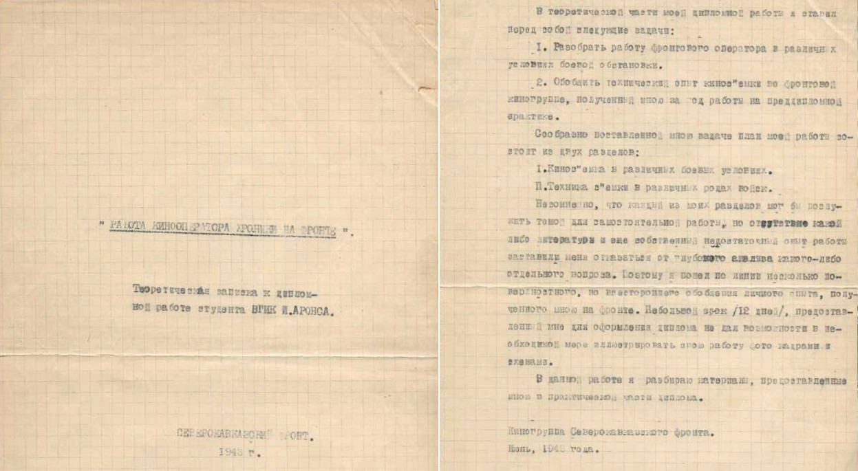 В августе 2019 года я возвращалась из Израиля в Москву, и по дороге в аэропорт таксист рассказал мне, что он сын фронтового оператора Ильи Аронса и у них с братом Владимиром сохранился архив отца. Они думали, что там только семейные фотографии, но однажды Владимир открыл одну из коробок, а из неё выпал боевой патрон от парабеллума, табельного оружия Ильи Аронса. Так он обнаружил фронтовые плёнки отца и начал их восстанавливать и изучать.