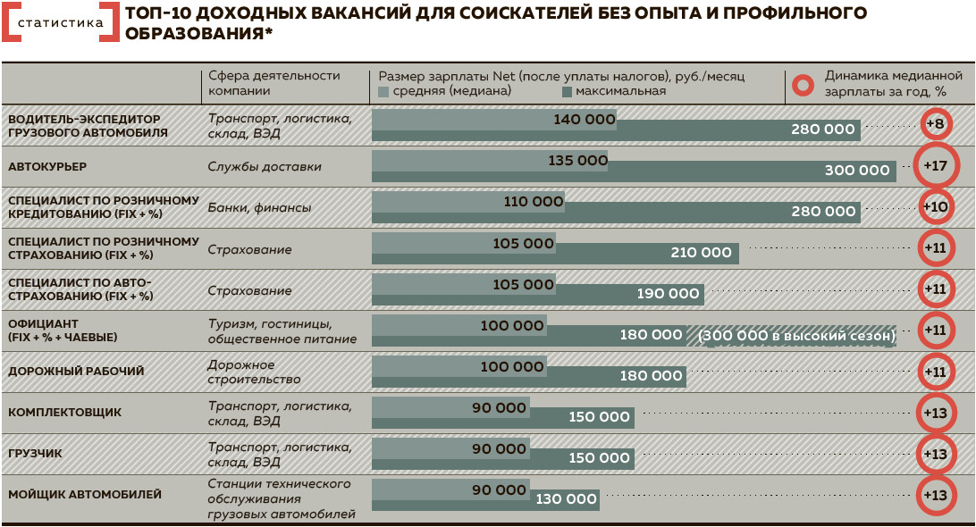 Молодежь без опыта может рассчитывать также на линейные позиции в ритейле, общепите и логистике, на вакансии в продажах и работе с клиентами: в call-центрах, банках, телекоме, отмечает Элина Куэста. В январе 2026 года, по данным SuperJob, наибольший спрос по числу вакансий для сотрудников без опыта был в сферах ритейла и продаж. За ними следовали сервисы доставки, транспорт и логистика, туризм, общепит и др.