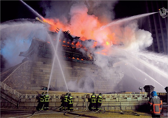 Южная Корея. Горит главное национальное сокровище — древние церемониальные ворота Намдэмун в центре Сеула. Они были построены в 1398-м и служили главным входом в город с юга, когда его обнесли высокой стеной. Эти ворота уже сгорали — во время Корейской войны 1950–1953 годов. Но в 1956-м их полностью восстановили, и этот опыт наконец пригодится.
