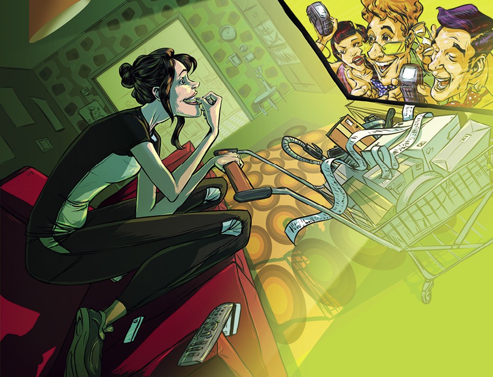 Уже битый час я кручу педали на велотренажере и смотрю канал «Наш боец», подразделение «Матч ТВ», посвященное единоборствам. Каждые 15 минут схватки на октагоне прерываются рекламой телемагазина Top Shop TV, втюхивающего товары, призванные навсегда изменить мою жизнь: спрей-швабры, мини-калькуляторы для почв, фигурки мух на инфракрасном управлении и монастырскую мазь «Живица с мухомором». Но главный хит сегодня — массажер для ног «Блаженство», больше напоминающий подушку, втиснутую в пластиковый контейнер, куда следует погружать ноги. За 2999 рублей (со скидкой) у владельца массажера должны перестать отекать ступни, тянуть мышцы и должно замедлиться варикозное расширение вен. Умирая от боли и усталости, я думаю: «Почему бы и нет?» и заказываю «Блаженство», не слезая с тренажера. Дальше события разворачиваются по ожидаемому сценарию: на экране массажер выглядел лучше, чем в жизни, телефон из нулевых вибрирует в пять раз мощнее него, и куда больше блаженства я могу получить, просто закинув ноги на работающую стиральную машину. Но избавиться от «Блаженства» практически невозможно: специалисты горячей линии приносят свои извинения и говорят, что, скорее всего, я сама сломала массажер. На сайте «Отзовик» у Top Shop TV репутация даже хуже, чем у актера Панина: проблемный, мучает навязчивыми звонками и эсэмэс-рассылкой, не принимает товар назад, не возвращает деньги и все в том же духе.