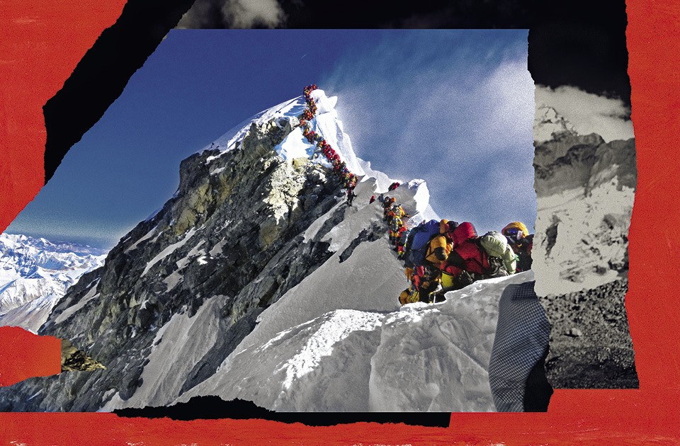 Грюбхофер и Ландграф проснулись вчера, 22 мая 2019 года, в базовом лагере на высоте 5364 метра. На часах было 11 вечера. Гору окутал туман, в котором то появлялись, то гасли фонарики других восходителей. Ночью ударили настоящие морозы, поэтому, когда Грюбхофер достал флягу, чтобы выпить воды, он обнаружил, что та превратилась в ледяной кирпич. Тело ломило, жажда не отступала, но дурные мысли надо было гнать прочь. После нескольких лет тщательного планирования, недельного похода в лагерь и пяти дней ожидания хорошей погоды он, наконец, добился своего — пришла пора покорить великую гору. Через десять часов, утром 23 мая, они с бледным Ландграфом стояли на вершине Эвереста размером со стол для пинг-понга, и казалось, все самое сложное уже позади.