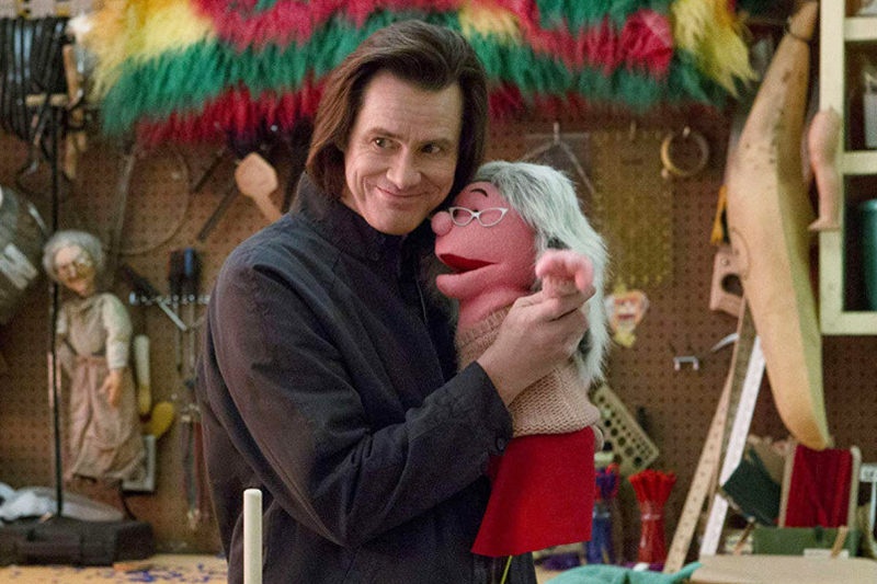 Долгие годы Джим Керри был маской, персонажем комедии дель арте, площадным дурачком, чьи мимические эскапады отвлекали зрителей на стыке веков от пугающих мыслей о миллиниуме (да и рядовых проблем). Периодически среди этих ролей-выходок просвечивал драматический потенциал, который закрепился в массовом сознании «Вечным сиянием чистого разума» (мимо на «Оскаре», на «Глобусе» – лишь номинация), а затем оказался крепко зафиксирован. Керри пропал с радаров, почти перестал кривляться, все чаще фигурировал в новостях в связи с депрессией и сложными личными отношениями; в прошлом году он вернулся в комично-драматичной роли телеведущего мистера Пиклза в шоу «Шучу», которое – буквально – на куклах показывало, как люди переносят скорбь, боль и прочие грани нервного срыва.