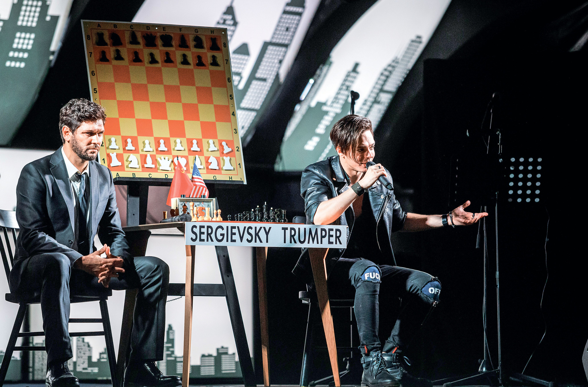 Вокруг шахмат происходили и события иного рода, в которых нашлось место и шпионским играм с прослушиванием, и психологическим манипуляциям, — холодная война была в самом разгаре. Спортивный поединок превращался в политический фарс. Пресса окрестила игру «матчем столетия», а сама история легла в основу мюзикла «Шахматы». Среди тех, кто напряженно следил за баталиями в Рейкьявике, оказался британский поэт и драматург Тим Райс, автор либретто знаменитой рок-оперы «Иисус Христос — суперзвезда». «А что, если шахматы и все, что крутится вокруг них, переложить на музыку?» — мысль, пришедшая ему в голову, показалась сколь оригинальной, столь и невыполнимой, на первый взгляд...