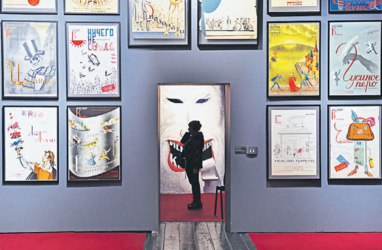 Это были афиши Акимова к его спектаклям в Театре Комедии, который он и возглавлял (1935–1949, 1956–1968). Не то что бы ему было можно, а другим нет. Он, возрождая искусство театральной афиши, просто не спрашивал, можно ли. Теперь огромная маска из пьесы Эдуардо де Филиппо встречает посетителей лаконичной, но емкой выставки.