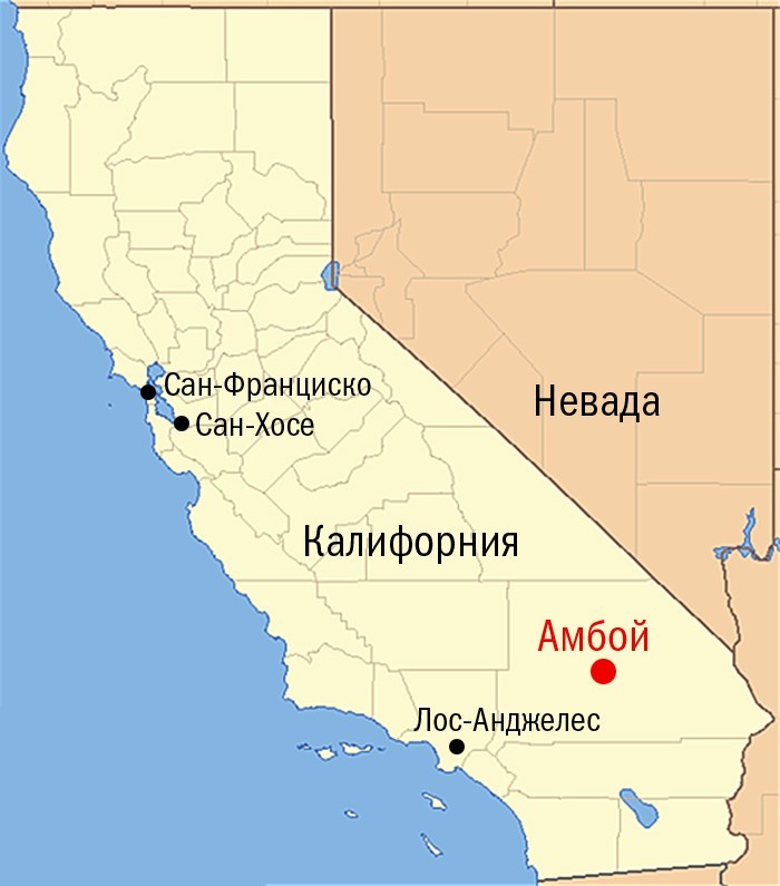 ...3 февраля 2018 года розовое солнце вставало в мареве над пустыней Мохаве. Серые камни, серый асфальт знаменитого шоссе 66, серые в рассветном сумраке необитаемые коттеджи у дороги. Город-призрак Амбой видел уже много тысяч таких рассветов. Когда-то это было оживленное поселение возле популярной дороги. Оно образовалось вокруг мотеля в глуши – единственного места на многие десятки километров вокруг, где можно было остановиться на ночлег. Хозяин мотеля привез сюда жену, они нарожали детей, открыли бензоколонку, магазин, кафе... Все это требовало обслуживающего персонала, и в богом забытое местечко на обочине потянулись люди. На сером песке построили аккуратные коттеджи, посадили газоны, организовали школу для детворы. Все это было похоже на марсианскую колонию из рассказов Брэдбери.