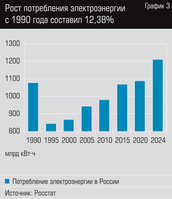 Долгосрочный прогноз потребления электроэнергии, разработанный правительством, предполагает увеличение потребления электроэнергии к 2042 году до 1449,72 млрд кВт.ч. Сейчас этот показатель находится на уровне 1206 млрд кВт.ч. То есть предполагается рост потребления примерно на 20%. При этом максимум потребления мощности прогнозируется к этому же сроку до 208,24 ГВт. В конце февраля в российской энергосистеме, как сообщил «Системный оператор», потребление электрической мощности составило 177,5 ГВт — новый абсолютный рекорд. Таким образом, ожидается, что прирост потребляемой в системе мощности составит порядка 17%. Долгосрочный прогноз предполагает, что среднегодовые приросты потребления электрической энергии и мощности составят 1,28 и 1,04% соответственно. Впрочем, в Схеме прямо оговаривается, что прогноз подлежит корректировке в случае изменения исходных данных, на базе которых он был подготовлен.