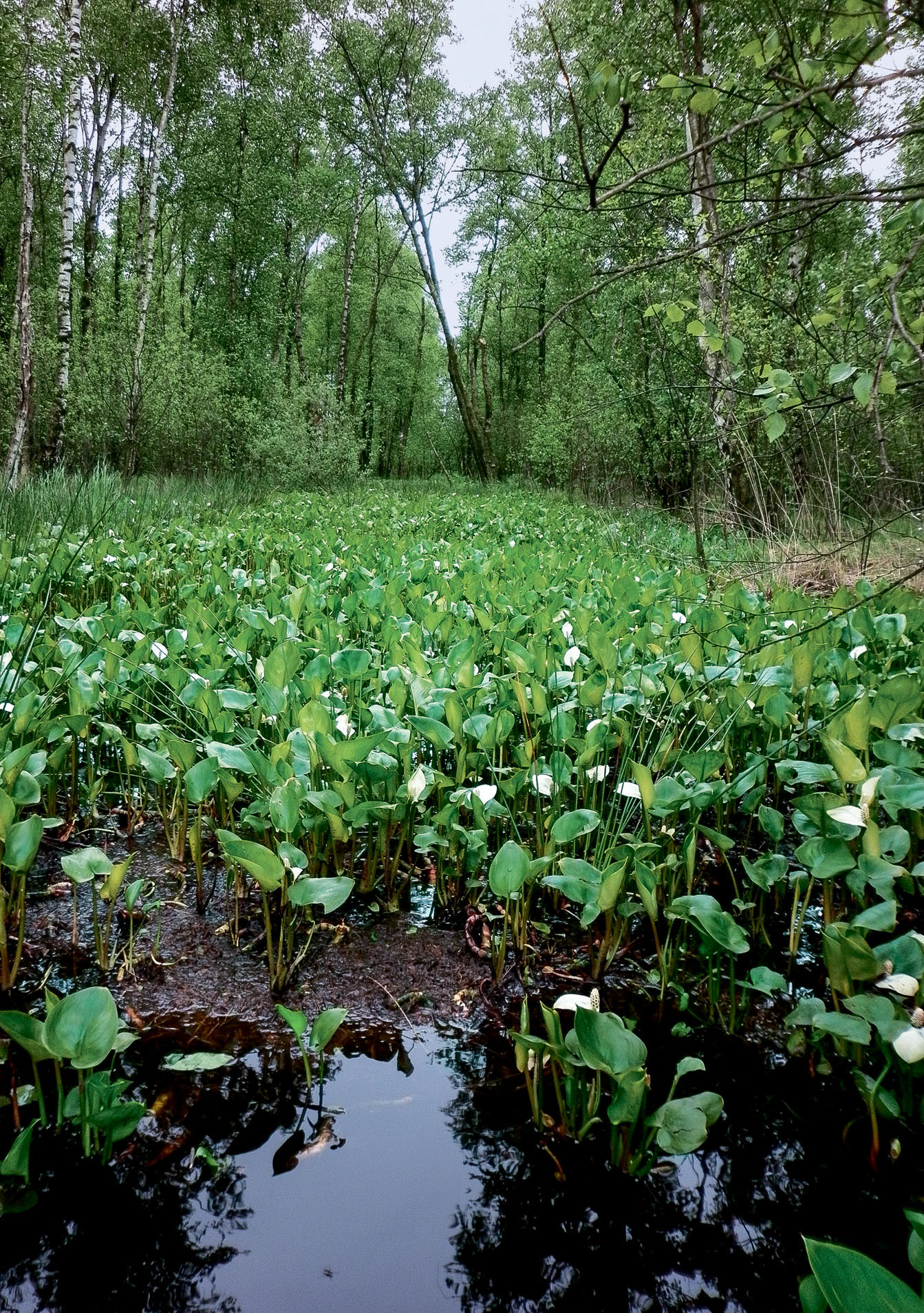 Белый парус над водной гладью — образ, прочно связанный с морем… Но чтобы полюбоваться нерукотворными природными парусами, вполне достаточно отправиться на… болото! И хотя, в отличие от волнующегося моря, оно кажется тихим и застывшим, и ему присуща сентиментальность. Приглядишься — и сквозь заросли камышей и тростника увидишь маленькие белые пятна, будто паруса миниатюрных лодок, нашедших пристанище в тихой гавани. Такой эффект создаёт цветущий белокрыльник болотный (Calla palustris), чьё название очень точно отражает его наружность и место обитания.