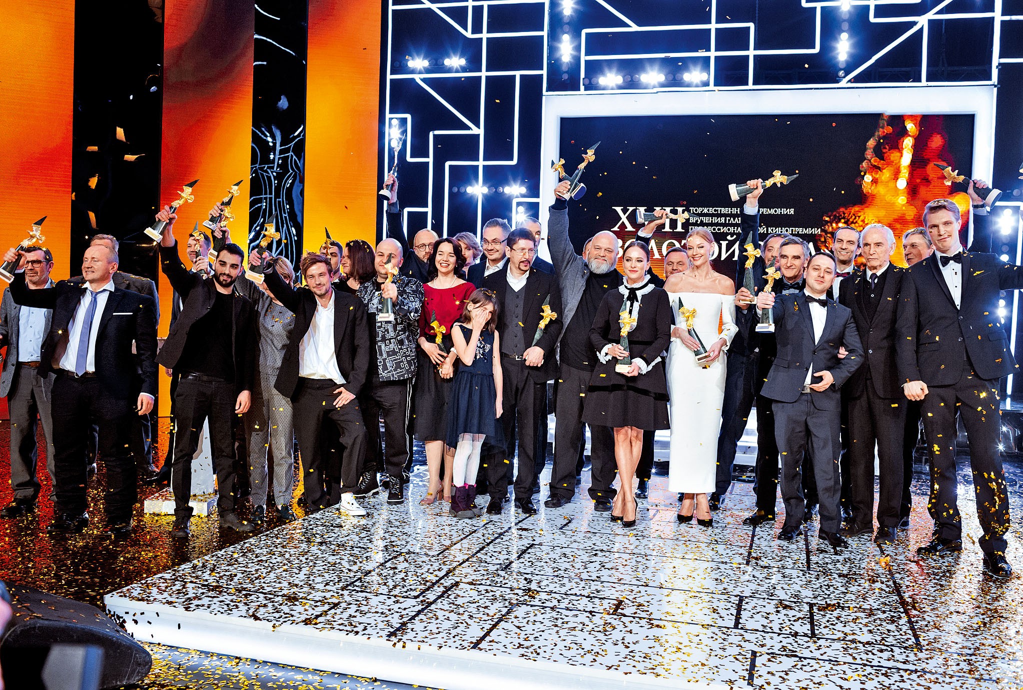 Среди главных фаворитов минувшего года — картины «Движение вверх», «Лёд», «Война Анны», «Спитак» и «История одного назначения». Они были представлены в большинстве из 23 номинаций и боролись за главный приз — «Лучший фильм». Заветная статуэтка, изготовленная компанией Mercury, в виде фигуры орла из позолоченного серебра с основанием из редкого вида итальянского мрамора двух цветов и дополненная бриллиантом, досталась драме «Война Анны». Режиссер фильма-триумфатора Алексей Федорченко взял также приз за лучшую режиссерскую работу.