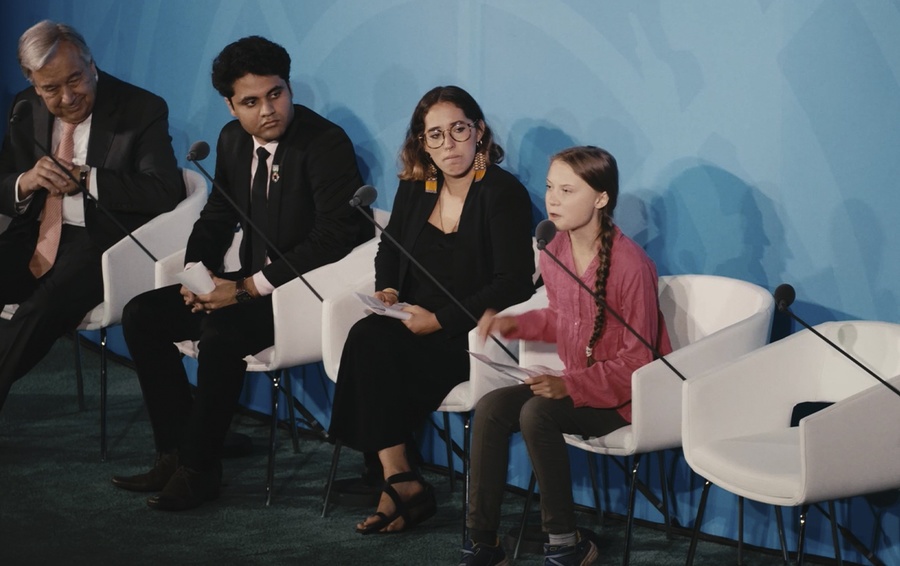 Картина показывает многотысячные протесты по всему миру и конфликты с полицией, когда лондонских демонстрантов за руки и ноги выносят с моста Ватерлоо, а участников акций Ende Gelände полиция и вовсе сопровождает непрерывно. Конечно в ленте показано и знаменитое выступление Греты Тунберг на Генеральной Ассамблее ООН в сентябре 2019 года, где она обратилась к высоким гостям с речью «How dare you?» («Как вы смеете?»), разошедшейся на мемы и цитаты по всему миру. Нашло отражение в кадре и противостояние шведской активистки с Дональдом Трампом на площадках мировых форумов, а также ее участие в различных международных конференциях, где шведка неизменно появляется в сопровождении свиты помощников и телохранителей.