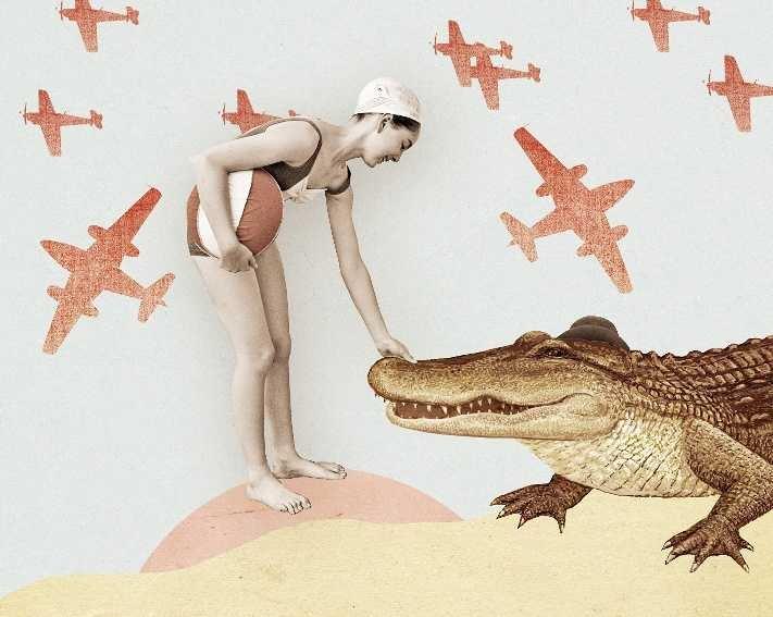 Фашистские самолеты сбрасывают бомбы, я пытаюсь укрыться в доме. Меня принимает незнакомая семья. Они предлагают мне пойти искупаться. В воде гигантский древний крокодил. Отец семейства велит мне замереть, но сам делает неловкое движение, и нас видят. Я думаю, что глупо и жалко умирать вот так, трусливо. Если уж умирать, я посмотрю в глаза моему убийце! И вдруг все меняется: крокодил «склоняется» передо мной и говорит, что с этих пор будет исполнять все, чего бы я ни захотела. Я вижу себя в образе дикой женщины, за спиной которой гигантский крокодил. Это выглядит очень впечатляюще и сильно.