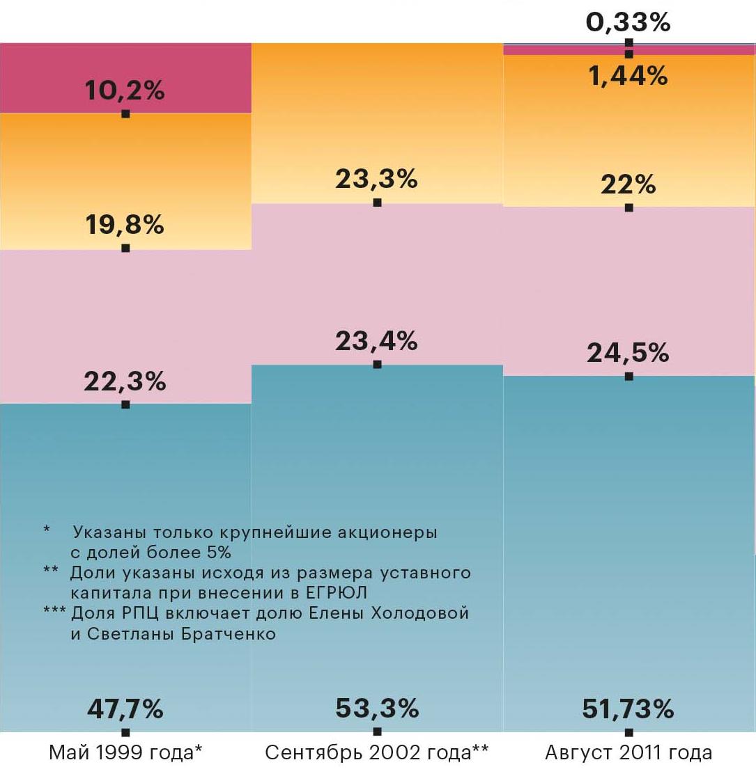 «Никогда не думал, что банк церкви может лопнуть», — сетует в разговоре с журналом РБК экс-заместитель губернатора Ямало-Ненецкого автономного округа Николай Бородулин, у которого в «Пересвете» лежали несколько сот миллионов рублей. Собеседники журнала РБК, погруженные во внутреннюю «кухню» банка, не столь удивлены. «Церковь была только лицом банка», — настаивает бывший топ-менеджер «Пересвета». «Реальный контроль» за всеми процессами осуществляли Швец и «Экспоцентр» (в состав правления организации более пяти лет входит дочь ректора МГУ Анна Садовничая. — РБК), утверждает собеседник. Эксперты агентства «Рус-Рейтинг» так же не видели в РПЦ хозяина ситуации в банке. «Пересвет» более не управляется бенефициарами связанной девелоперской группы», — честно указало в конце октября агентство, понижая рейтинг компании «РегионИнвест» (заемщик банка и связанная с «ПересветИнвестом» структура, судя по данным в «СПАРК-Интерфакс»). Остановить игру девелоперских групп, связанных друг с другом и с банком, церковь не смогла или не захотела даже после возвращения себе статуса основного акционера «Пересвета». Когда Кирилл стал патриархом, доля структур РПЦ начала постепенно расти: к сентябрю 2012-го у церкви были уже 48% капитала банка.