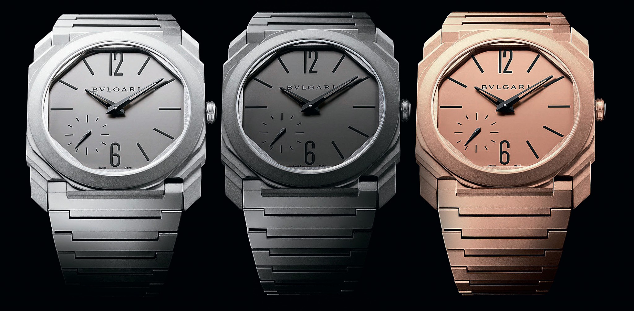 Разработанная великим Джеральдом Джентой архитектура Octo — сама по себе произведение искусства. Многочисленные грани (в актуальном дизайне их число доведено до 110) обеспечивают эффектную игру света и теней на плоскостях корпуса часов. С этого года в коллекции появились модели Sandblasted, прошедшие абразивно-струйную обработку. Она гарантирует, что розовое золото сохранит тёплое свечение, не будучи при этом сверкающим — оно останется светлым, но не ослепительным.
