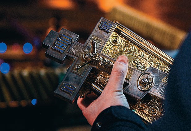 Зажженные в ночи свечи, сверкающие церковные одежды, духовная музыка — все это, казалось бы, должно было настроить на возвышенный лад. Но отчего-то никак не получалось. Распевная крещенская молитва смешивалась с деловыми полицейскими разговорами по рации. И выходило что-то несуразное, хотя и метафизическое.