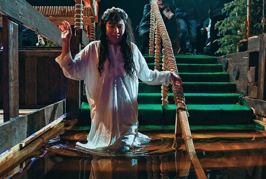 — Вы когда из купели выйдете, расслабьтесь. Все зажимаются от холода, а надо расслабиться, — делится советом с нерешительной одинокой дамой бывалый сотрудник МЧС. — Тогда обязательно словите эту эйфорию.