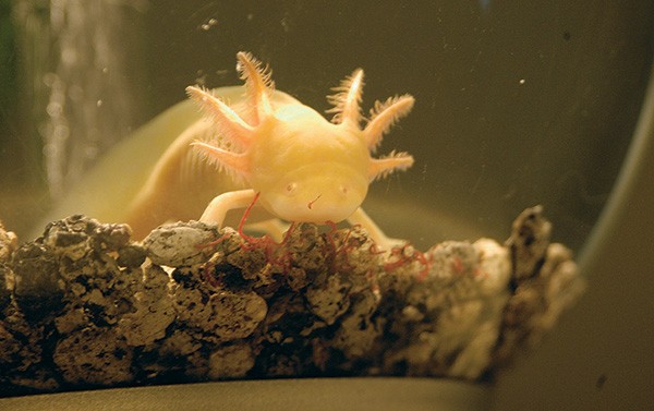 «Играющий в воде» – именно так с испанского переводится название симпатичной амфибии с тремя парами наружных жабр, которые похожи на волосатые розовые веточки. Аксолотль – это личинка саламандры, способная (как, кстати, и некоторые другие хвостатые амфибии и ракообразные) отращивать на месте старых лап новые. Эта загадка не даёт покоя биологам, ведь умение воссоздавать утраченные конечности или органы – путь если не к бессмертию, то, как минимум, к крепкому здоровью.