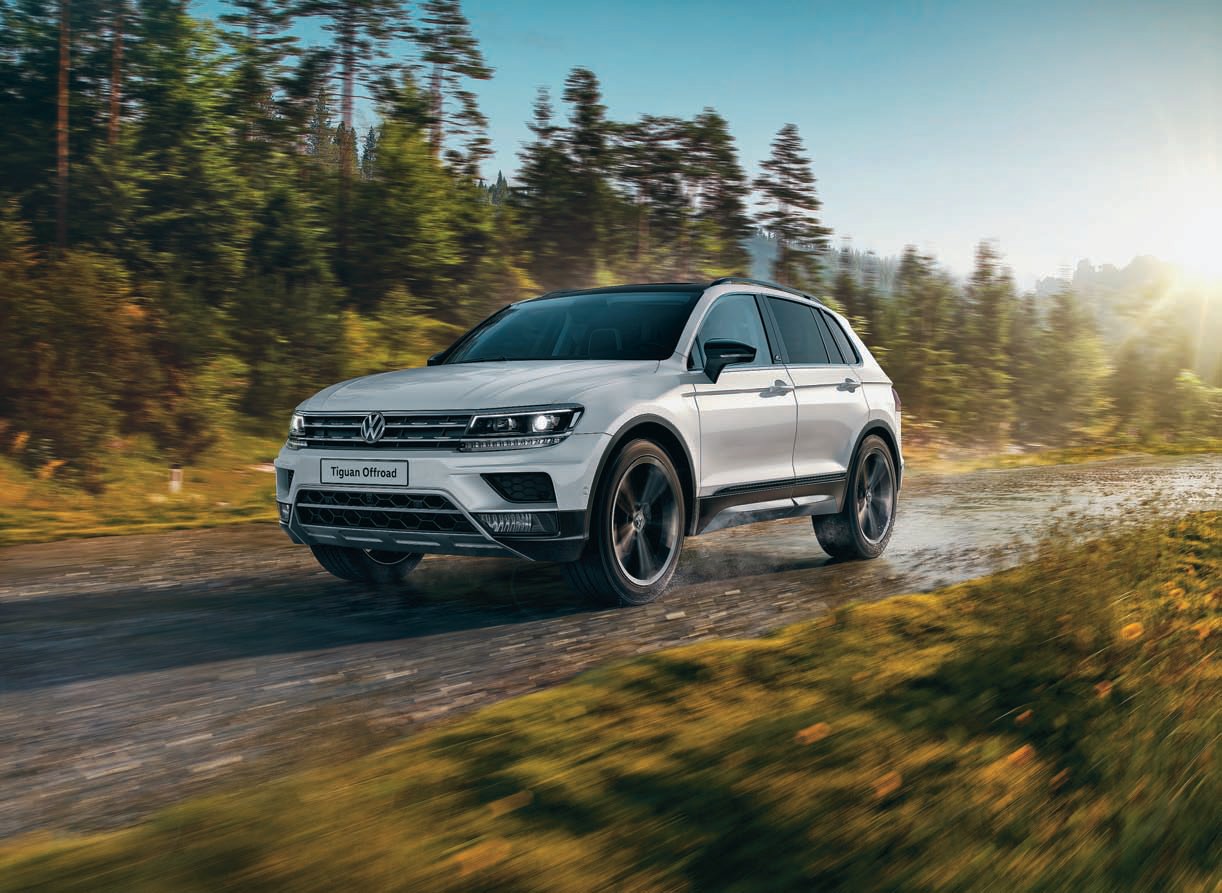 Особняком стоит исполнение Tiguan OFFROAD с иным передним бампером и более серьезным пластиковым обвесом кузова. И только OFFROAD предлагает уникальное исполнение с механической коробкой передач и полным приводом, которое точно понравится любителям забраться в настоящие дебри.