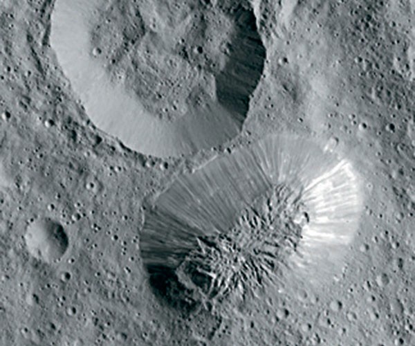 Церера — интересный объект уже потому, что это ближайшая к Солнцу карликовая планета и крупнейшее небесное тело в поясе астероидов, содержащее почти треть его массы. Недавно стало известно про еще одну примечательную особенность Цереры — американские астрономы выяснили, что в течение последнего миллиарда лет там извергались криовулканы. В отличие от обычных вулканов, извергающих расплавленные породы, криовулканы возникают в условиях экстремально низких температур окружающей среды, извергая воду, аммиак и метан в жидком и газообразном состоянии. В результате таких извержений образуются ледяные горы. Уже была известна одна из таких гор — Ахуна, высотой в 4–4,5 километра, а теперь нашли два десятка ледяных пологих гор, «расплывшихся» от древности. (1)