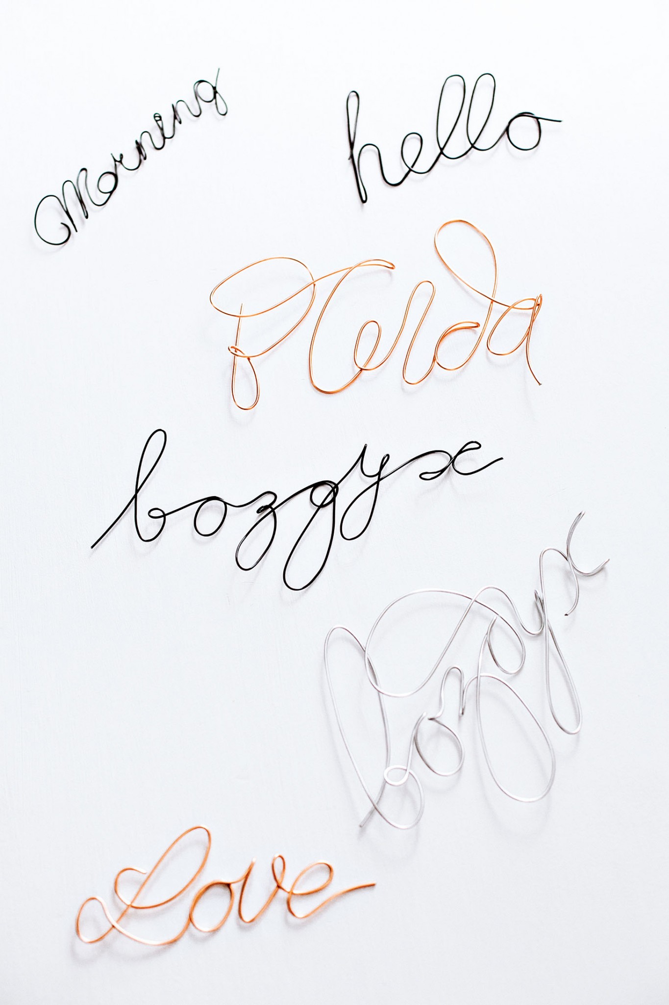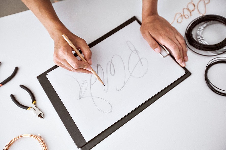 1. На бумаге пишем слово или распечатываем готовый шрифт. Учитываем, что слово складывается из одного куска проволоки. Поэтому линия должна быть непрерывной, следите за ее плавностью.