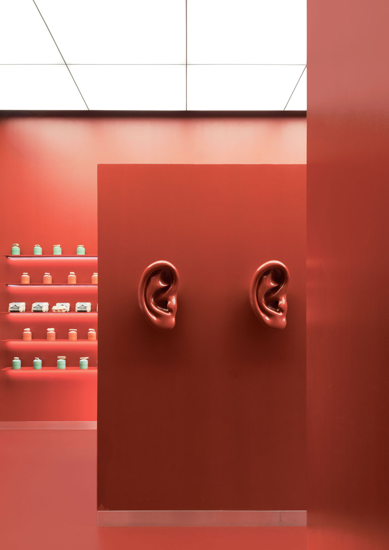 Флагманский магазин IRNBY на Кузнецком Мосту в Москве: отправной точкой визуала стали старые библиотеки, ирландские пабы и гимназические раздевалки. Мне было интересно исследовать, как дерево — главный материал этих помещений — меняется со временем. Я использовала необработанную латунь, чтобы она естественно старилась от прикосновений, а всю мебель делала на заказ. Например, консоль стала оммажем мебели Поля Дюпре-Лафона, который в 1930‑х создавал объекты дизайна на стыке фунционализма и ар-деко. А еще я добавила в интерьер арт-объект моего авторства — «Сердце», вдохновленное сюрреалистическими работами Сальвадора Дали. В московском магазине Predubezhdai тоже есть мой арт-объект — «Ухо».