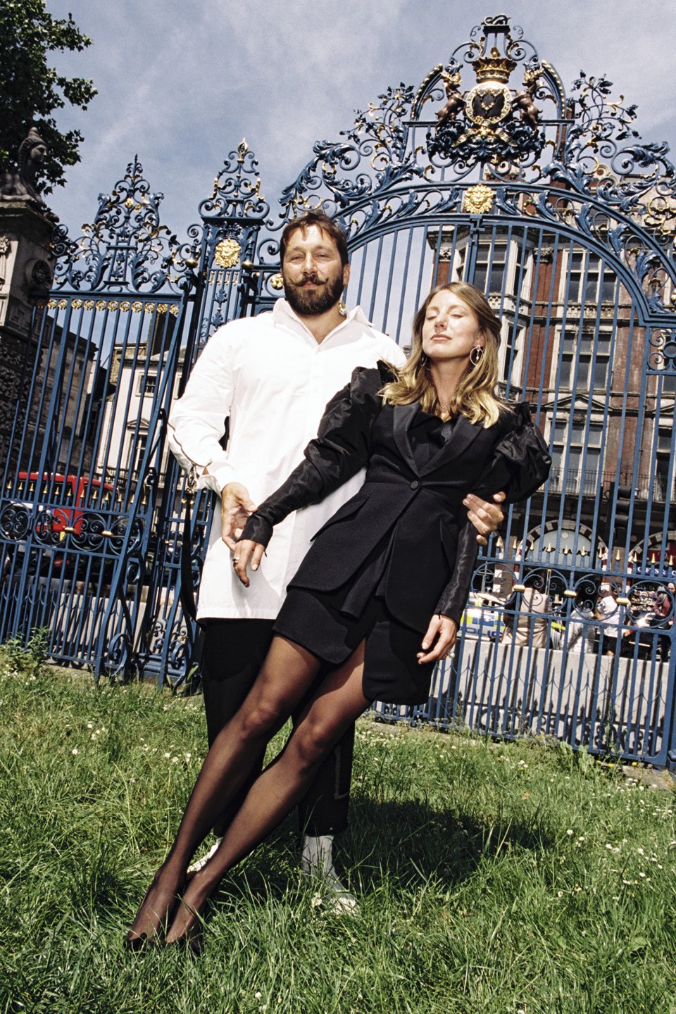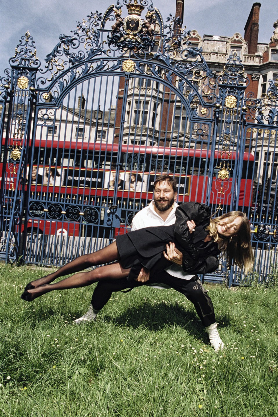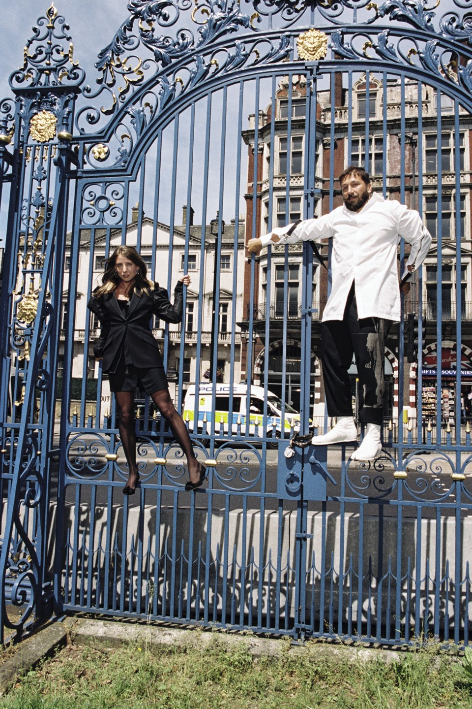 Мы сталкиваемся с Женей у дверей Hide. На нем футболка с Алекcандром II и узкие, будто облитые водой, красные джинсы. Идет он еле-еле, широко расставляя ноги и картинно постанывая, — оказывается, вчера впервые за полгода сел на лошадь после травмы. В ресторане нас встречает Таня — любимая женщина хозяина, мама их трехлетней дочери Алисы. Таня переодевает Женю в длинную белую хламиду — теперь он готов к съемке.