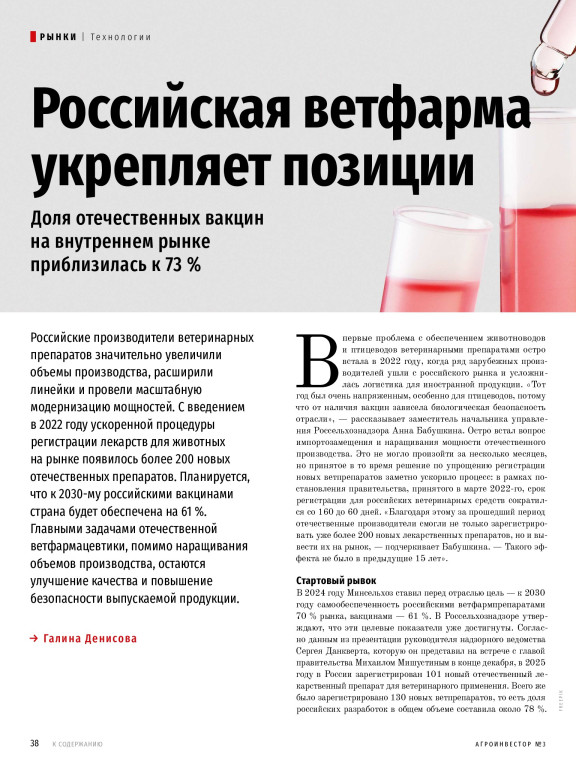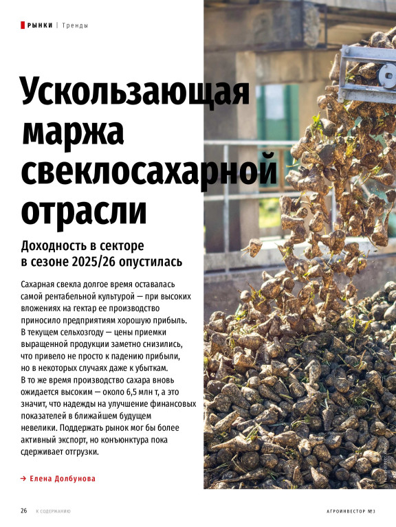 Лидер сельхозпроизводства России — читайте в журнале «Агроинвестор» № 3 за март 2026 года об агропроме Краснодарского края. Узнайте, почему этот регион благоприятен для развития почти всех направлений сельского хозяйства и как местному аграрному бизнесу минимизировать риски. Еще в выпуске: смогут ли агроклассы решить проблему с кадрами в АПК, как игрокам свеклосахарного сектора сохранить рентабельность культуры, почему минеральные удобрения имеют большое значение для экономики и какие задачи ставит перед собой российская ветфармацевтика. Больше подробностей внутри!