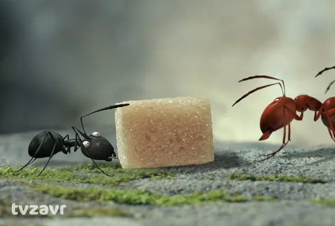 Однажды прогуливаясь по лесу, маленькие черные муравьишки обнаруживают огромную коробку с сахаром, которую после пикника, видимо, забыли люди. Позвав на помощь своих друзей, маленькие трудяги вместе с Божьей коровкой решают перенести находку в муравейник и сделать из нее запасы на зиму. Однако не только они приметили сахарное сокровище: злобные красные муравьи имеют свои планы на эту коробку. И с маленькими черными собратьями церемониться они не собираются.