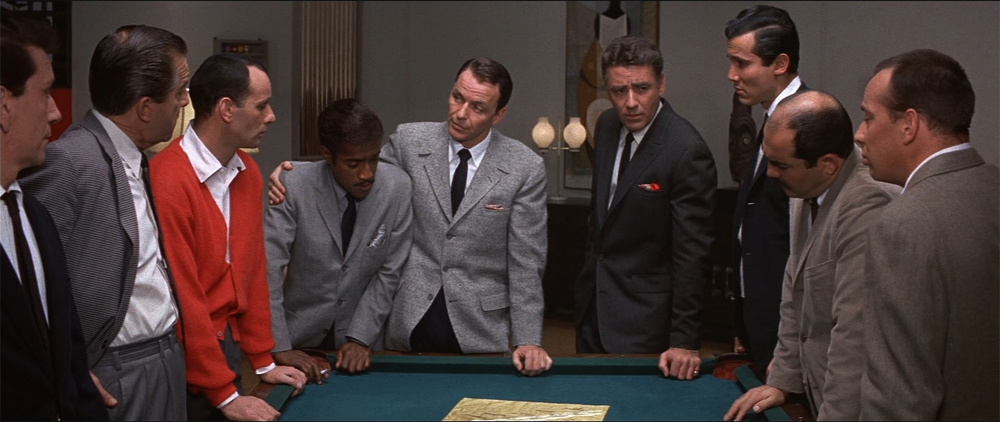 Не все нынче припомнят, что вся катавасия с корешами Оушена стартовала в 1960 году. «Одиннадцать друзей Оушена» первого созыва был далеко не самый первый фильм про ограбления, и даже не лучший, однако стилистически значимый для жанра. Скажем так — системообразующий.
