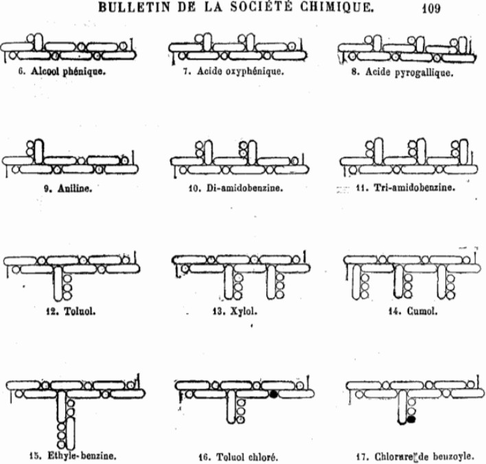 Из-за большой массовой доли углерода эти производные напоминали обычные ненасыщенные углеводороды, в которых некоторые связи углерод-углерод одинарные, а некоторые — двойные. Но их химические свойства отличались от свойств всех прочих углеводородов: например, ненасыщенные соединения с двойными связями (алкены) легко вступают в реакции присоединения с галогенами и галогенводородными кислотами, а ароматические вещества никого присоединять не хотят — они вступают только в реакции замещения. Отличие в том, что в первом случае атомы галогена и водорода просто присоединяются к атомам углерода по двойной связи, превращая ее в одинарную. А в случае реакций замещения атом галогена может только заменить собой водород, оставив двойную связь нетронутой.