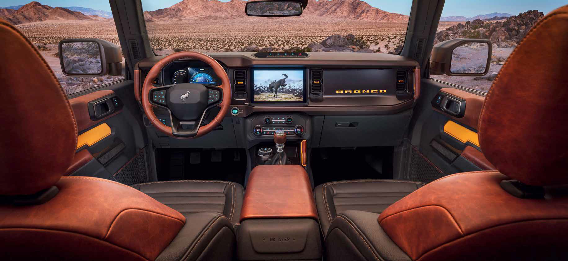 Интерьер, несмотря на простоту материалов, выполнен стильно и простотой не отпугивает. Почти все кнопки прорезинены, а сиденья отделаны кожзамом, который в спецификации прямо назван винилом, что видимо должно подчеркнуть всепогодность интерьера. Боковая поддержка обозначена слабо и функциональной нагрузки не несёт. Сиденья довольно жёсткие и плоские, а посадка – вертикальная. Сзади места достаточно, хотя колени слегка задраны, как и должно быть в рамном внедорожнике. Из удобств: розетка на 110 вольт, USB-разъёмы и вентиляция. У двухдверной версии вместо дивана два раздельных сиденья второго ряда, да и места в ногах из-за короткой базы заметно меньше («Форду» даже пришлось уменьшать бак).