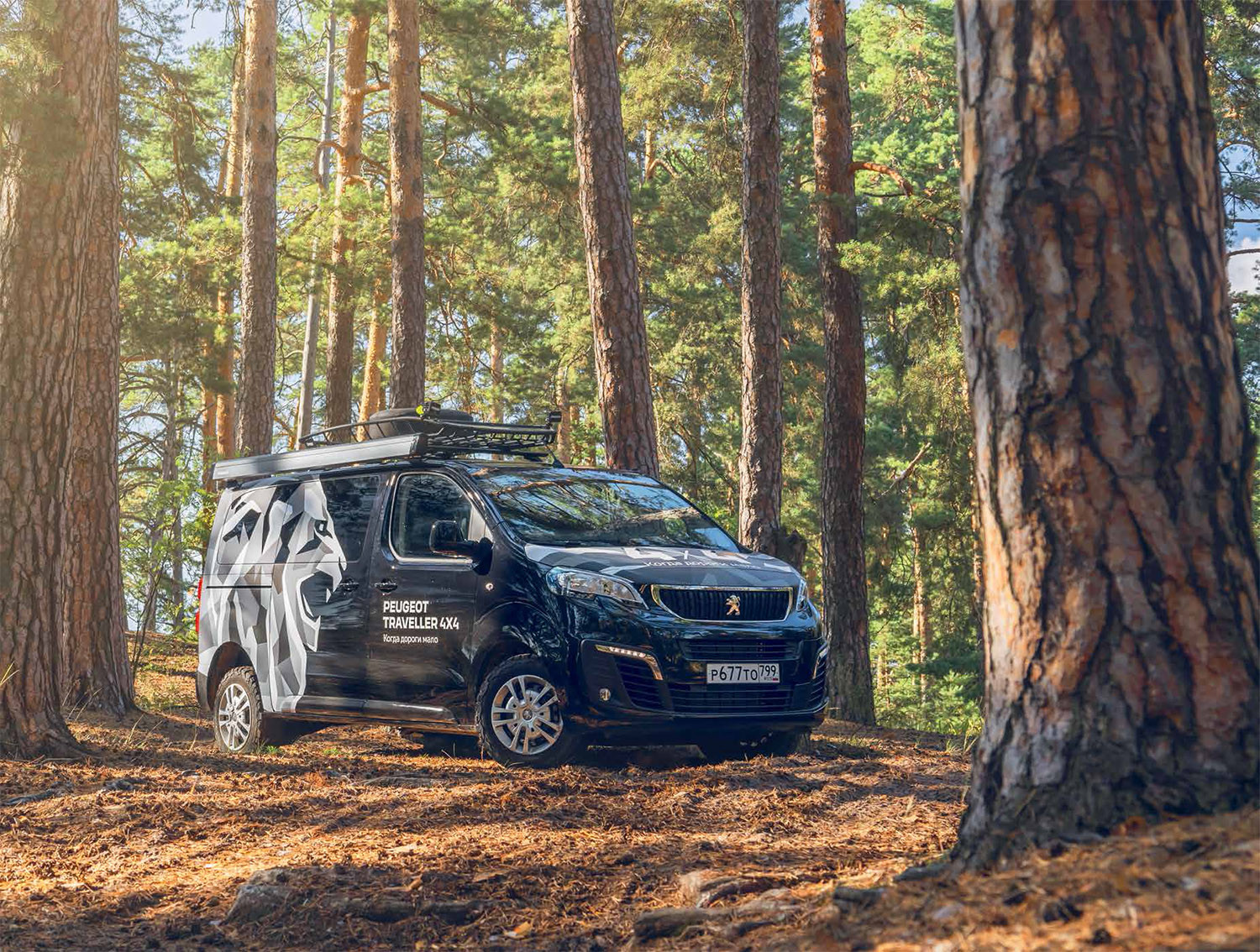Peugeot Traveller 4х4 у нас доступен в удлинённой (5 309 мм) и стандартной (4 959 мм) версиях. Кроме общей длины микроавтобусы ничем не отличаются — колёсная база (3 275 мм) у них одинаковая, общий и 150-сильный двухлитровый турбодизель, и механическая шестиступенчатая коробка передач. Клиренс — 200 мм, угол въезда во всех версиях 23,2 градуса, а вот угол съезда стандартного «Тревеллер» (33,8 градуса) на 10,8 градусов больше, чем у длинного, так что для строительства внедорожного кемпера это наилучший вариант. Впрочем, создатели концепта решили, что строить ничего не нужно. В продаже полно готовых решений, из которых легко скомпоновать туристическую конфигурацию микроавтобуса.