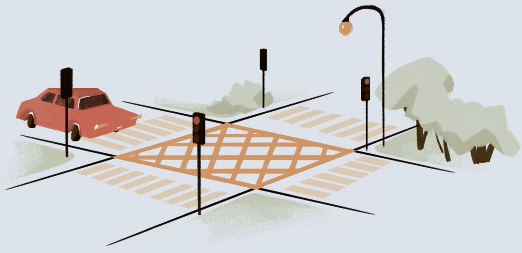 Со времён стандартизации проезда круговых развязок «вафельница» — пожалуй, самое полезное нововведение. Потому что немалая часть пробок образуется именно на перекрёстках. Один выехал и встал в хвост затору. На него посмотрели ещё несколько, подумали: «А чем мы хуже?» — и тоже встали. А там, глядишь, переключился светофор, и поперечный поток упёрся в тех самых, которые уверены, что они не хуже. И всё — затор создан. Можно гудеть, ругаться, считать ворон — в общем, традиционно проводить пробочный досуг, а можно было просто