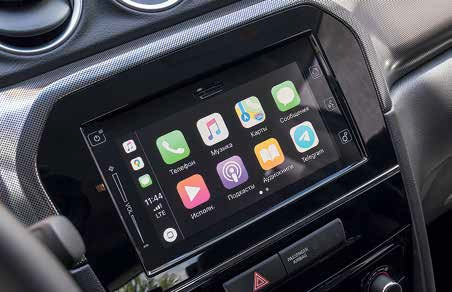 Но если внешность Seltos выглядит немного агрессивной, каким кажется всё юное и дерзкое, то дизайн Vitara отсылает нас к более спокойным временам, когда наша продуктовая корзина стоила процентов на семьдесят дешевле, чем сейчас. В Suzuki всё просто, понятно и максимально прагматично. Пластик одинаково ровной фактуры, простой блок управления однозонным климатом и крупные клавиши второстепенных функций. Но в этом классическом спокойствии есть и современные элементы, зачастую довольно забавные. На центральной консоли появился небольшой цветной экран, на который выводится важная информация о происходящем. И если переключать режимы движения, а их здесь три, плюс блокировка межосевой муфты, то в зависимости от выбранных настроек системы полного привода ALLGRIP SELECT на мониторе демонстрируется забавный мультик: вот Vitara едет по городу, вот она где-то в лесу, а вот – мчит по трассе. Кстати, не только анимированная трасса поможет почувствовать себя настоящим спортсменом – в помощь водителю кроссовера подрулевые лепестки в качестве намёка на не такой уж смиренный характер машины. Вверху центральной консоли – часы. Да не просто