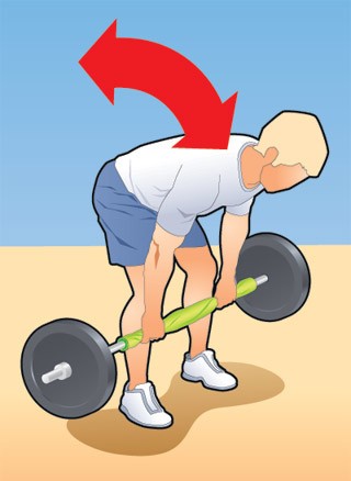 Во время сгибаний на бицепс не сутулься и не делай резких движений. Тяни штангу, а не забрасывай на грудь с гиканьем и кряхтеньем.