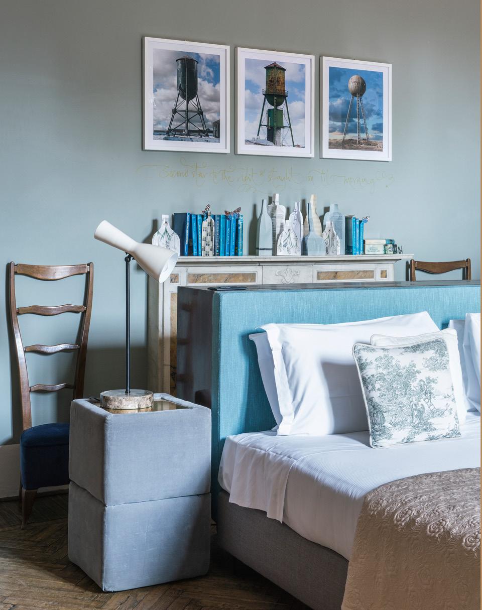 Роскошный семейный пансион располагается в палаццо, которое с XV века принадлежало семейству богатых флорентийских торговцев Торриджани — хозяева и сейчас занимают верхние этажи здания. Над интерьерами AdAstra работали архитектор Франческо Маэстрелли и братья-дизайнеры Марко и Маттео Пердука. Пространство получилось очень живым, как будто это и не гостиница вовсе, а настоящий дом. Помпезная архитектурная оболочка служит фоном для разноцветной мебели — в основном это винтаж 1940–1960‑х годов. На полках стоят книги, стены комнат плотно увешаны всевозможными картинками, везде море аксессуаров. В каждом номере имеется отдельно стоящая ванна, и это единственное, что их объединяет, — интерьеры в каждой комнате разные. В коридорах авторы проекта позволили себе отойти от образа эклектичного итальянского жилища и добавили немного “американщины”: на черных стенах развешаны обложки журналов The New Yorker. Но в остальном здесь все очень чинно.