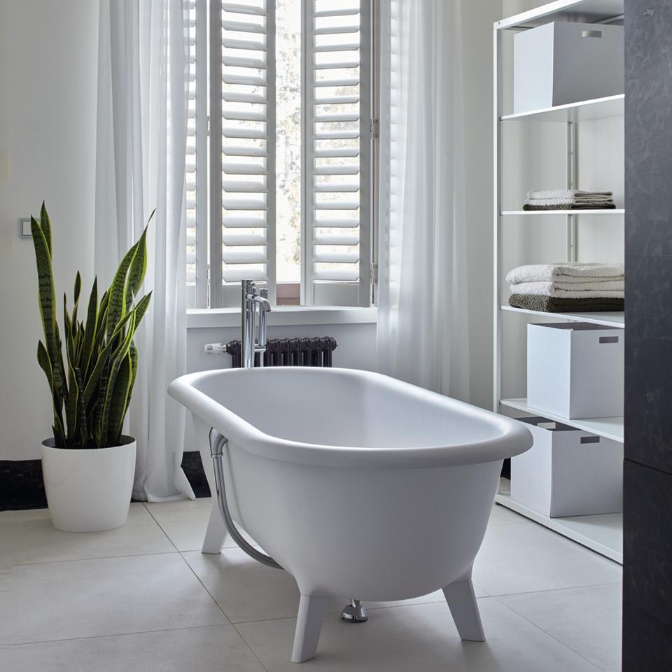 Это детская ванная комната, и она объединена с гардеробной. Площадь позволяла установить здесь и ванну, и душ. Но когда речь идет о детях, лучше поставить все-таки ванну, чтобы им было где поплескаться. Эта модель Agape выполнена из очень приятного на ощупь материала cristalplant: он одновременно напоминает камень, пластик и резину.