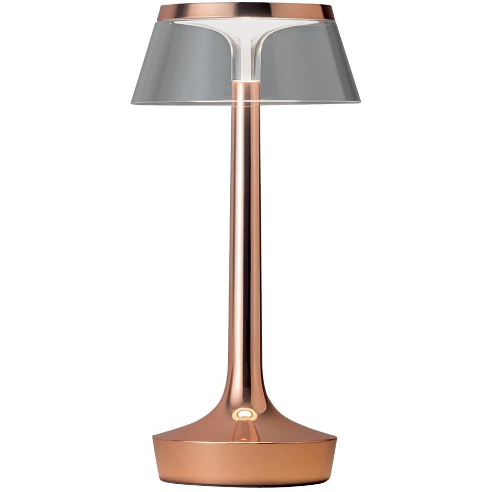 Легендарный Филипп Старк спроектировал настольную лампу Bon Jour T. Изначально ее ножка и абажур прозрачные, выбрать отделку можно самостоятельно из нескольких вариантов. Выпускает светильник компания Flos.