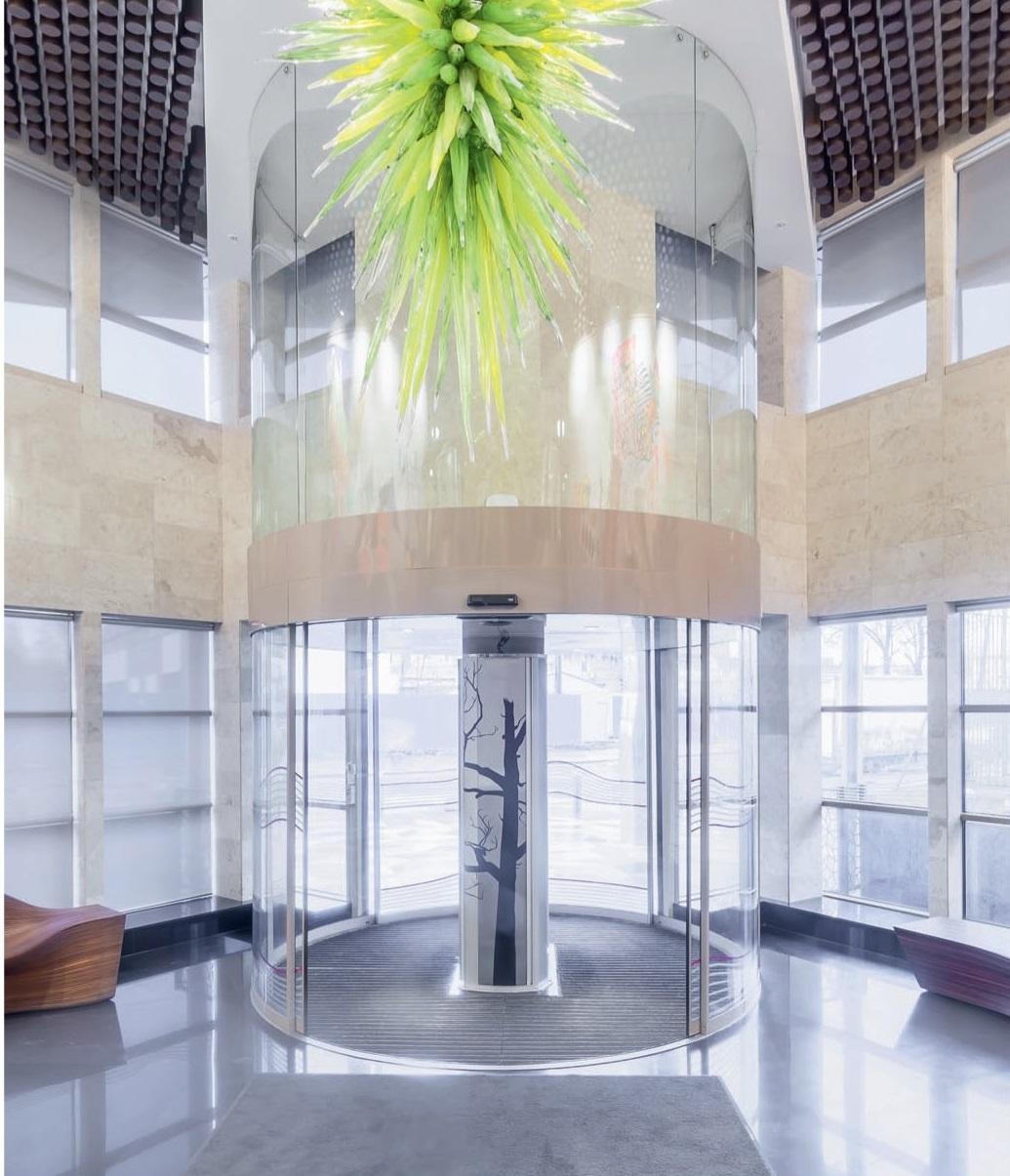 Оно похоже на одно из заданий на вступительных экзаменах в Архитектурный институт: перед абитуриентом ставят набор геометрических фигур (цилиндр, куб, конус и так далее), и он должен мысленно их все друг с другом пересечь и нарисовать похожую на здание объемно-пространственную композицию. Явейн примерно это и проделал — основной цилиндрический объем у него эффектно пересекается с разновеликими призмами, и силуэт у здания оказывается весьма динамичный. Любо-дорого смотреть, как эта помесь корабля с айсбергом рассекает окружающую маловыразительную среду. Но даже эта эффектная “внешность” здания меркнет перед неожиданными богатствами, которые встречают посетителя внутри.