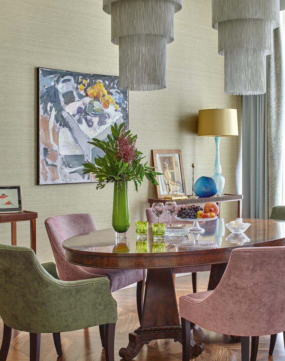 "Здесь очень сильно проступают черты грядущего ар-деко. По сути, это его предчувствие, – рассказывают дизайнеры Георгий и Надежда Ананьевы о доходном доме на Пречистенке, построенном Густавом Гельрихом в стилистике северного модерна. – Таких домов много в Санкт-Петербурге и в Европе, а для Москвы это редкий и оттого особенно привлекательный образец». Недавно Ананьевы завершили в этом доме одну из квартир, и лейтмотивом всего интерьера стал заданный самой архитектурой стиль – в смягченной, осовремененной форме. Заказчики пришли к дизайнерам с пониманием “духа места”. “Нам было приятно, что они с уважением отнеслись и к истории, и к атмосфере. К счастью, они не просили у нас ни Людовиков, ни Прованса”, – рассказывает Надежда. Все быстро сошлись на варианте современной классики с элементами ар-деко в мебели и в отделке. “Для себя мы назвали этот проект “Ар-деко лайт”, – продолжает Георгий. – Мы старались уйти от чрезмерной декоративности и тяжеловесности, которыми порой грешит этот стиль”. Архитектура дореволюционного здания задала не только стилистику, но и планировку. Фасад дома строго следует неправильной форме квартала, как это было принято в старину, поэтому квартира очень сильно вытянута и имеет сложные очертания, непараллельные стены и непрямые углы. Дизайнерам пришлось с этим считаться. Так родилась планировка, состоящая из двух логических частей: большая общественная зона и приватная часть с кабинетом, спальней и комнатами дочерей, в которые ведет длинный и сравнительно узкий коридор.