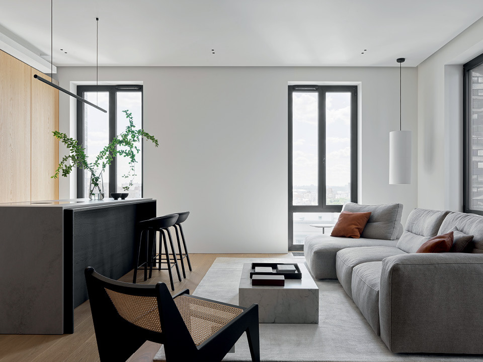 Хозяин этой квартиры уже обращался в бюро Babayants Architects пять лет назад, но тогда до реализации проекта дело так и не дошло. Купив новую квартиру, он снова пришел к ним. “За эти годы изменились его пожелания: он больше не хотел темный интерьер с обилием дерева, и мы сделали светлое, открытое и наполненное воздухом пространство”, — рассказывает Лия Бабаянц. Бюро, основанное ее супругом Артемом Бабаянцем, специализируется на минималистичных интерьерах, и заказчики к ним приходят подготовленные, понимающие особенности этого стиля: им не нужны внешние атрибуты респектабельности. “Это осознанные люди, они не боятся оставаться наедине с собой, им не нужна никакая обертка, что-либо отвлекающее от сути”, — добавляет Лия.