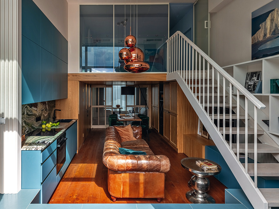 Потолки высотой 4,5 метра позволили дизайнеру Анне Кокаревой сделать в квартире второй этаж и значительно увеличить жилое пространство.