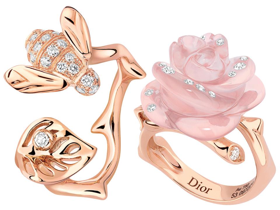 Ювелир Виктуар де Кастеллан — как садовник из детской считалки, которому никогда не надоедают розы. Так что встречайте очередное пополнение коллекции Rose Dior. На фото — кольца из розового золота и розового кварца с бриллиантами.