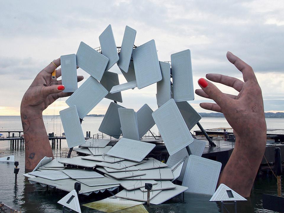 Брегенцский оперный фестиваль показывает оперу “Кармен” в постановке Каспера Хольтена. Для спектакля над Боденским озером выстроена декорация высотой с многоэтажный дом, которую создала сценограф Эс Девлин, оформлявшая шоу Леди Гаги, Бейонсе и Pet Shop Boys.