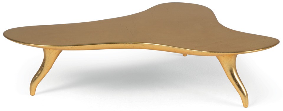 Три изгиба столешницы и три ноги — вот и весь журнальный столик Mantua от Christopher Guy. Раньше он был представлен только в черном или белом лаке, а в этом году к семейству прибавился золотой. Такой экземпляр наверняка займет центральное место в любой гостиной.