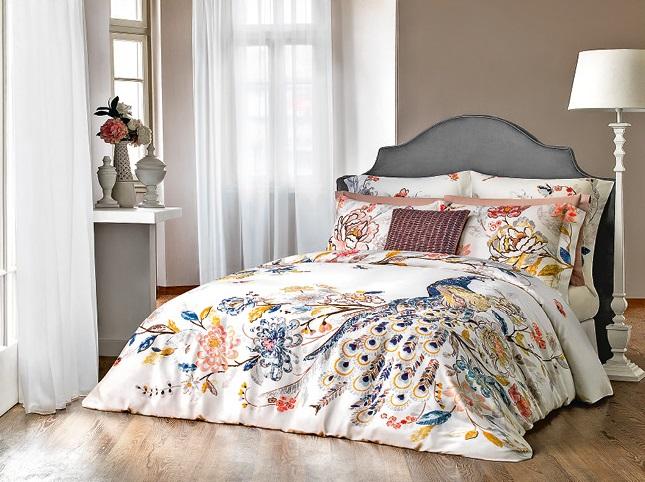 В китайской культуре павлин считается олицетворением солнца и символом семейного счастья и гармонии. Изображение этой гордой птицы в окружении пионов и хризантем теперь украшает новый комплект белья из бамбукового волокна, выпущенный компанией Togas.