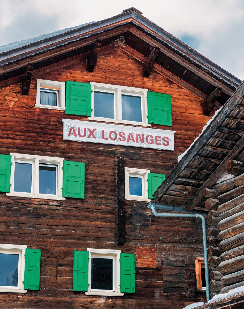 Внешность бывает обманчивой, и это шале Aux Losanges в деревушке Чирчен в долине Шанфигг тоже не то, чем кажется на первый взгляд. Сам дом был построен в 1869‑м, и на протяжении почти ста пятидесяти лет в нем располагались кафе и ресторан. А в 2014 году все изменилось: новые владельцы, швейцарские коллекционеры Стефан Ломбарди и Армин Цинк, надумали превратить бывшую таверну в загородный дом и проводить в нем выходные и праздничные дни. Они сразу решили, что обойдутся без традиционного “альпийского шика”: оленьих рогов, чучел диких животных и открытого очага. “Все это слишком предсказуемо и банально”, — говорят хозяева.