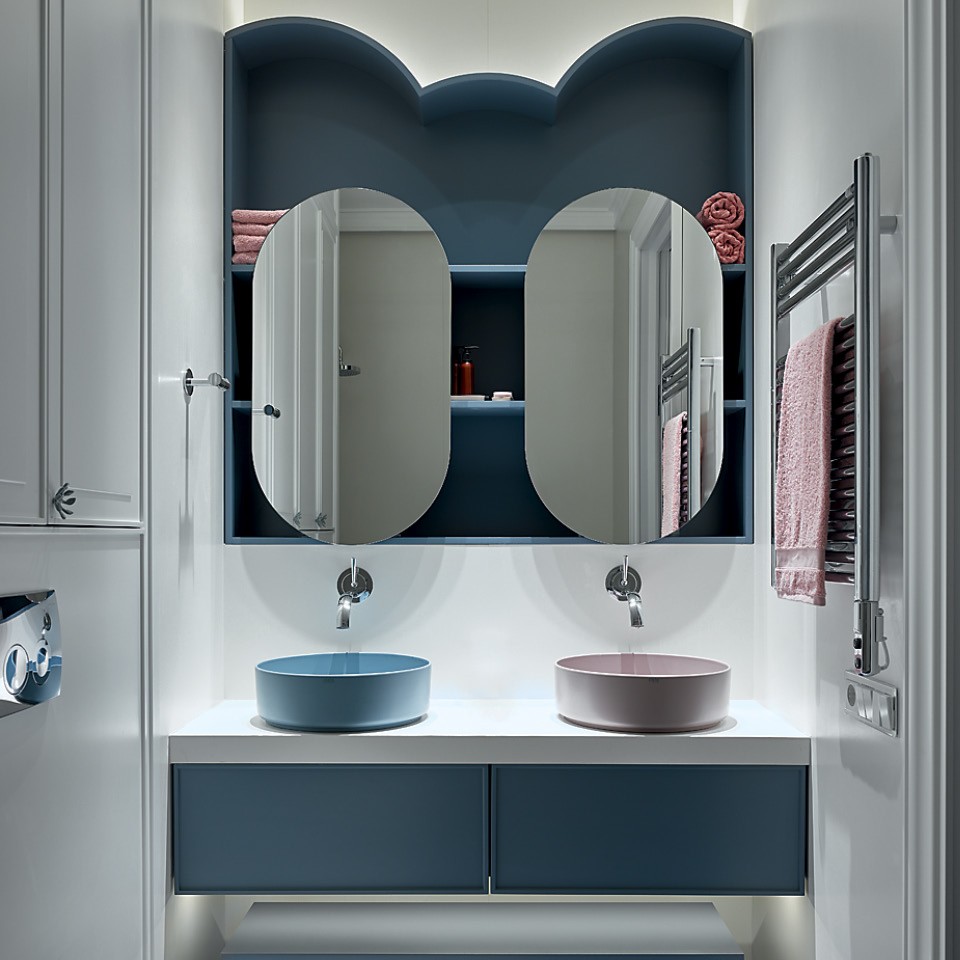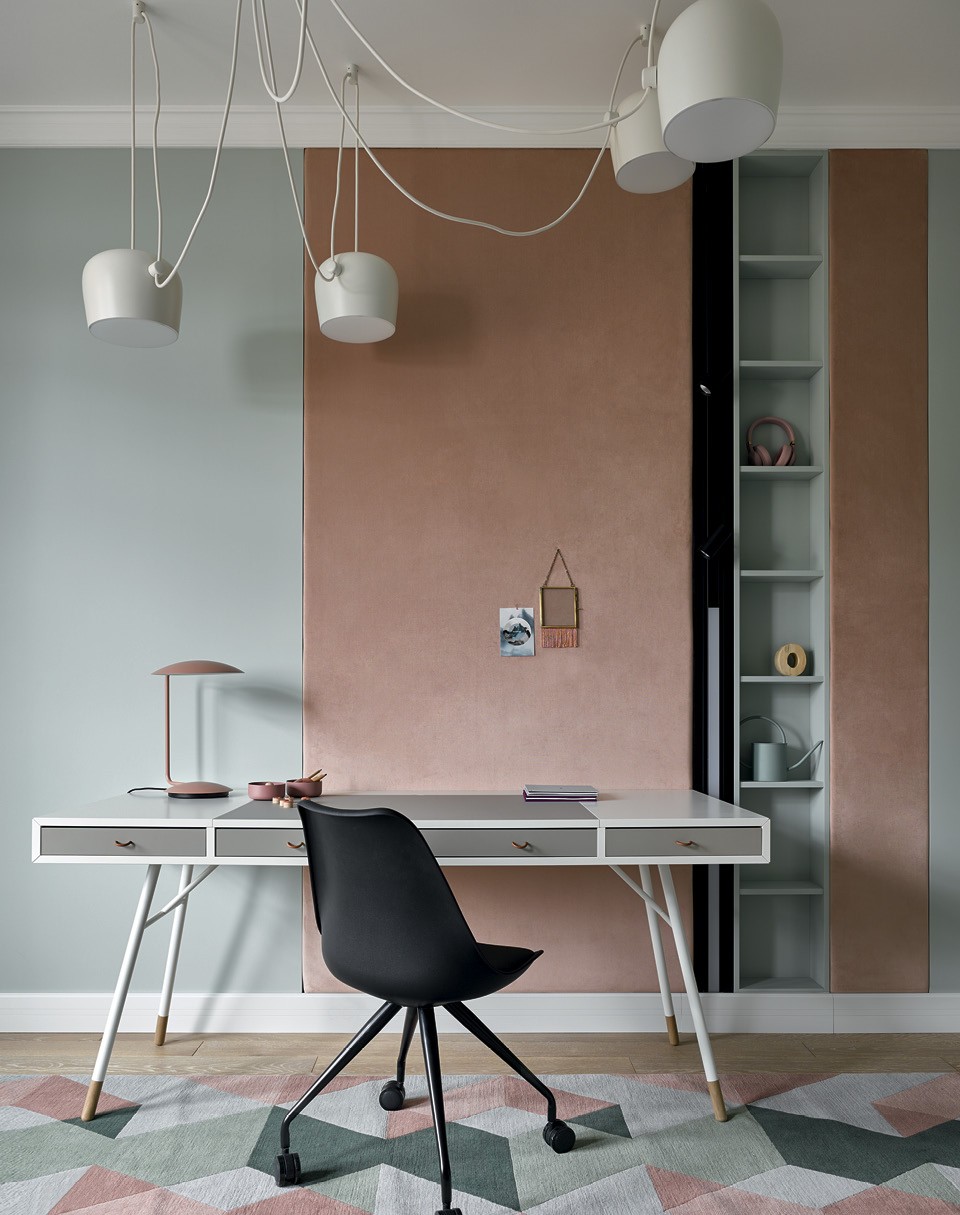 Заказчик Екатерины Угловой присоединил к квартире еще одну такую же и решил полностью “отдать” ее детям. Дизайнер сделала здесь три детские и игровую (она заняла помещение кухни). Основную концепцию и элементы оформления — плинтусы, карнизы и двери — она продублировала из взрослой части квартиры, а детскую тему ввела деликатно: в одной комнате нарисован космонавт, во второй — фламинго, а в третьей — Маленький принц. “Эта жилая часть более функциональная, — объясняет Екатерина. — Мобильные и модульные конструкции позволяют быстро реорганизовывать пространство для занятий, игр или отдыха. Дети вообще могут сами менять и достраивать мир вокруг себя”.