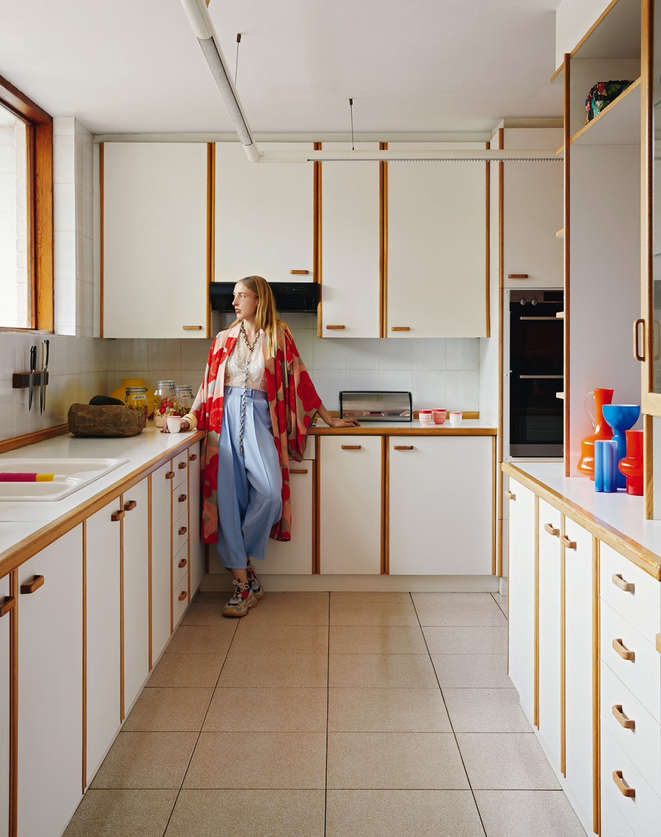 Меблировка в доме довольно эклектичная — Лезанн привезла сюда вещи, которые собирала последние лет шесть-семь. Тут есть и мебель в стиле середины ХХ века, и современные предметы, часть из которых сделали друзья хозяйки. Например, многие светильники придумал дизайнер Аугуст Де Вет, который занимается освещением на ее фэшн-шоу, а некоторые картины на стенах — коллаборация модели Леди Сколли и художницы Марлен Хетти Стейн, которая помогала оформлять показы Viviers весна-лето 2020. В целом подборка искусства в доме неплохо иллюстрирует текущую ситуацию на южноафриканской арт-сцене. “Я люблю покупать работы на выставках выпускников, — говорит Лезанн. — Это хороший способ увидеть новые таланты”.